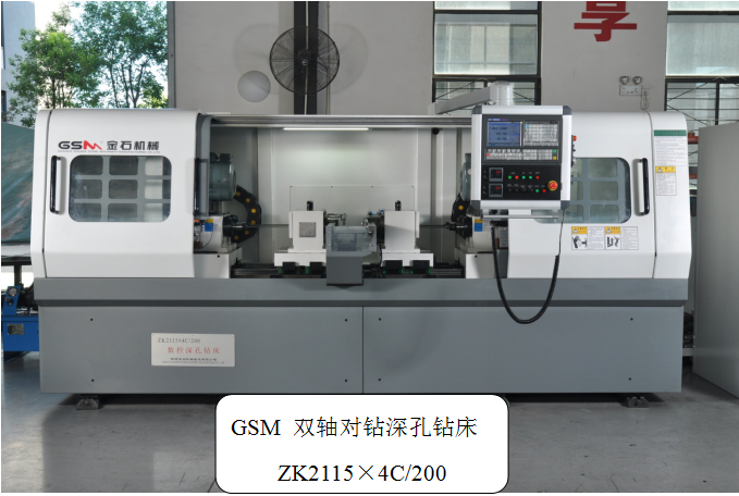 1. 機(jī)床結(jié)構(gòu)的選擇:因?yàn)?phi;9f8 (+0.013-0.035)孔徑公差要求非常高,又加之零件為大批量生產(chǎn),效率要求極高,所以深孔加工過程需要穩(wěn)定可靠,并且要方便刀具及工裝的調(diào)整。所以,機(jī)床的主軸數(shù)量選擇為2軸。如果選用4軸機(jī)床,則同時調(diào)整4支高精度的刀具,難度很大,也很難保證加工質(zhì)量。為了提高加工效率,考慮將左側(cè)的φ10.5±0.1深孔與φ9f8 (+0.013-0.035)同時加工。這樣可以保證工件一次裝夾,完成左右兩側(cè)孔的加工,大大提高了加工效率,加工效率比通常的四軸機(jī)床還要高很多。所以機(jī)床選擇為雙軸對鉆深孔鉆床。加工孔徑范圍:φ3~φ15。機(jī)床結(jié)構(gòu)參見下圖。